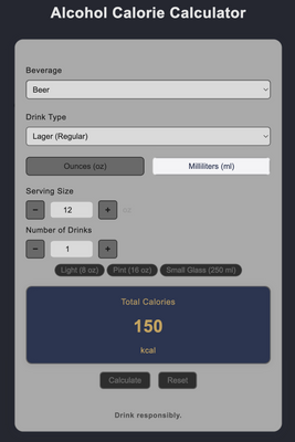 Our Alcohol Unit and Calorie Calculator makes it simple — just pick your favorite beer, wine, cocktail, or keto cocktail and see the calories and units add up in real time. No math, no guesswork. Perfect for anyone interested in alcohol calorie counting, drink calorie calculators, managing your weight, cutting back, or just being more mindful.